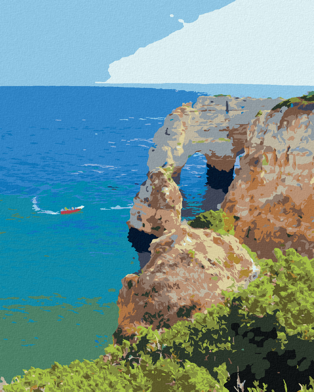 Malování podle čísel - LETNÍ KRAJINA PORTUGALSKÉHO POBŘEŽÍ - 40x50 cm, vypnuté plátno na rám