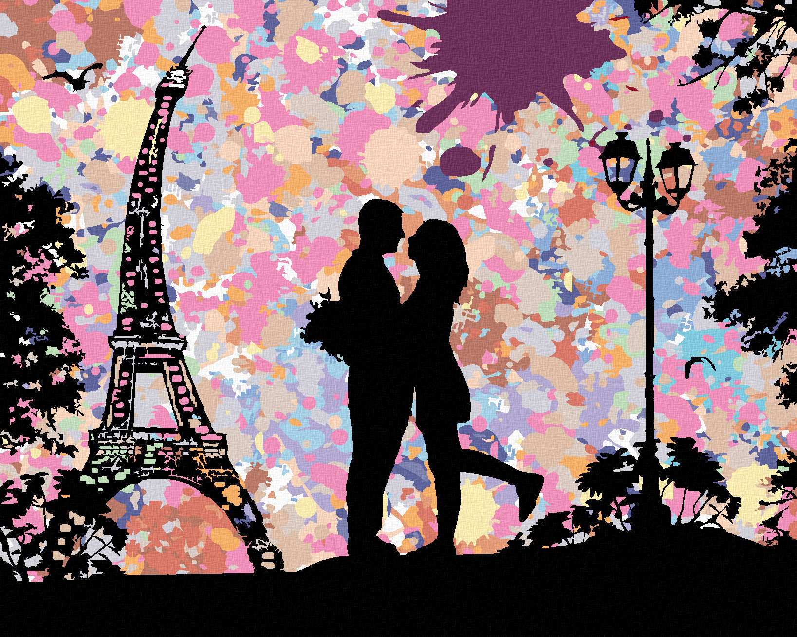 Malování podle čísel - MILENCI A ABSTRAKTNÍ EIFFELOVA VĚŽ - 40x50 cm, bez rámu a bez vypnutí plátna