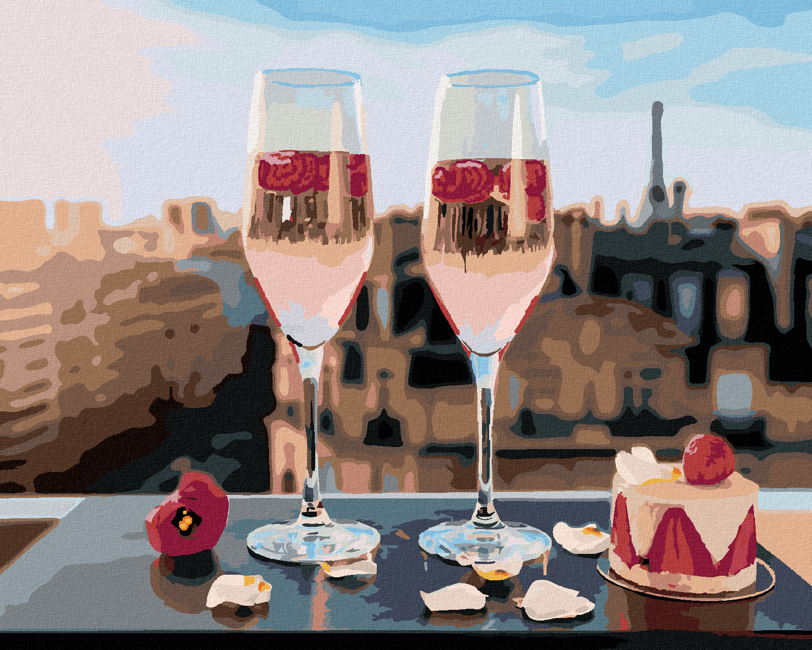 Malování podle čísel - SKLENIČKY S VÍNEM V PAŘÍŽI - 40x50 cm, bez rámu a bez vypnutí plátna