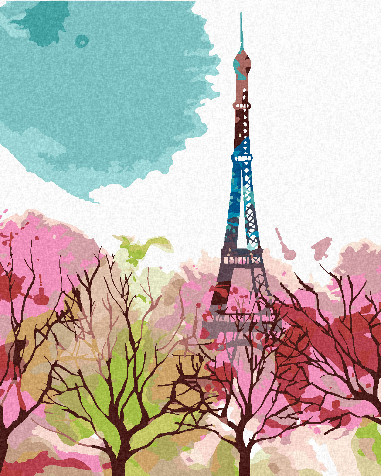 Malování podle čísel - ABSTRAKTNÍ EIFFELOVA VĚŽ A STROMY - 40x50 cm, bez rámu a bez vypnutí plátna