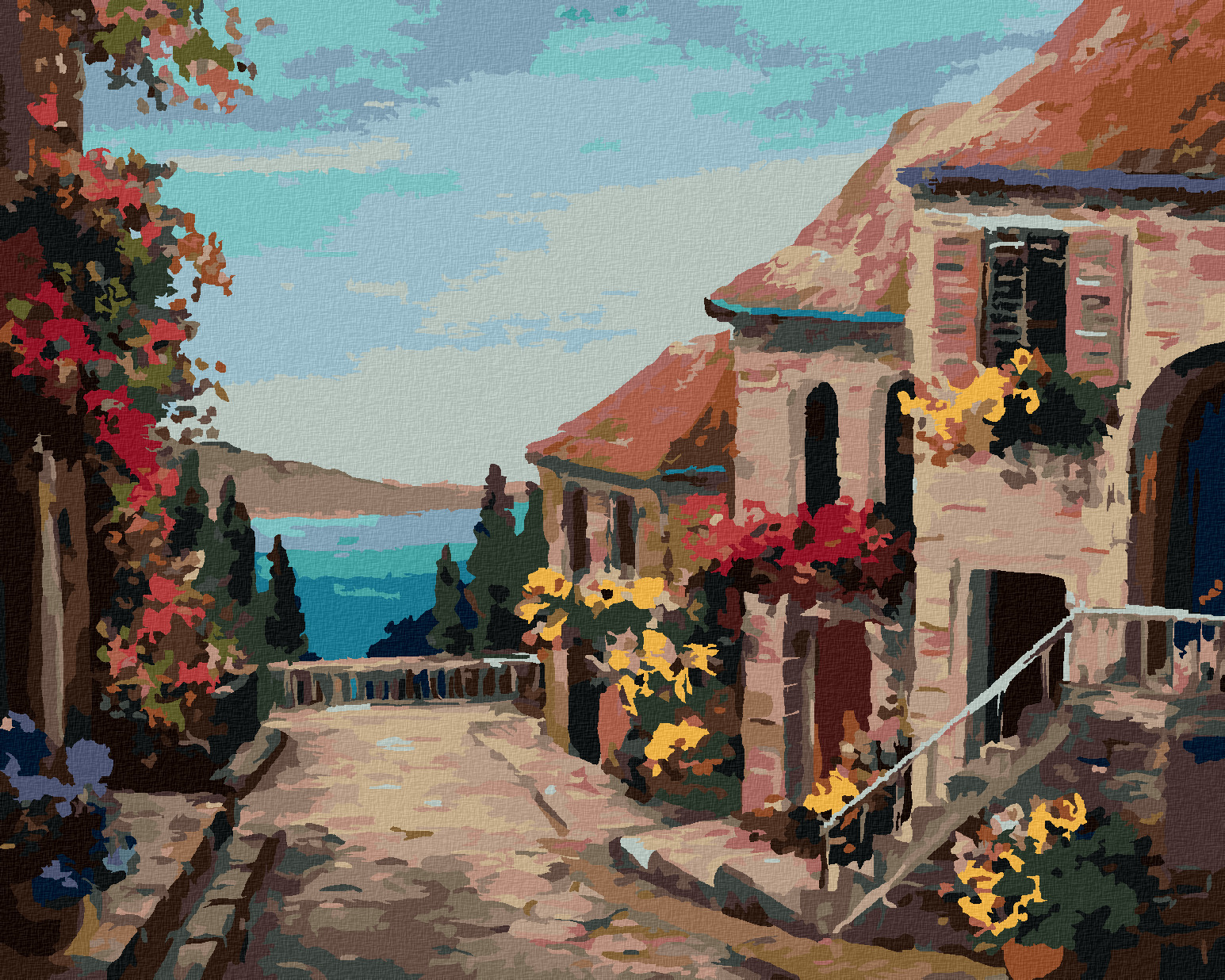 Malování podle čísel - DOMY BLÍZKO MOŘE - 40x50 cm, vypnuté plátno na rám
