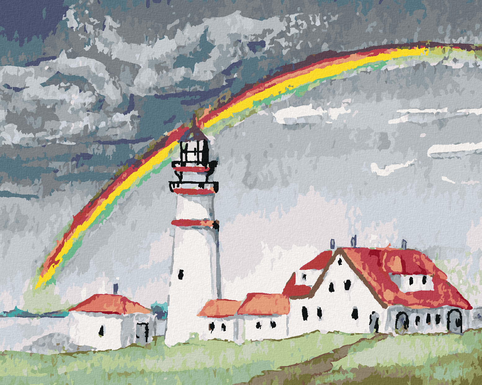 Malování podle čísel - DUHA NAD MAJÁKEM - 80x100 cm, bez rámu a bez vypnutí plátna