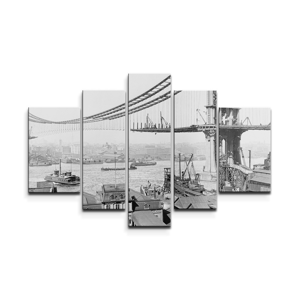 Obraz - 5-dílný Stavba mostu: 125x90 cm