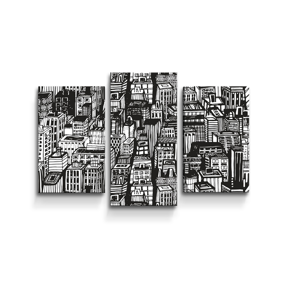 Obraz - 3-dílný Kreslené mrakodrapy: 75x50 cm