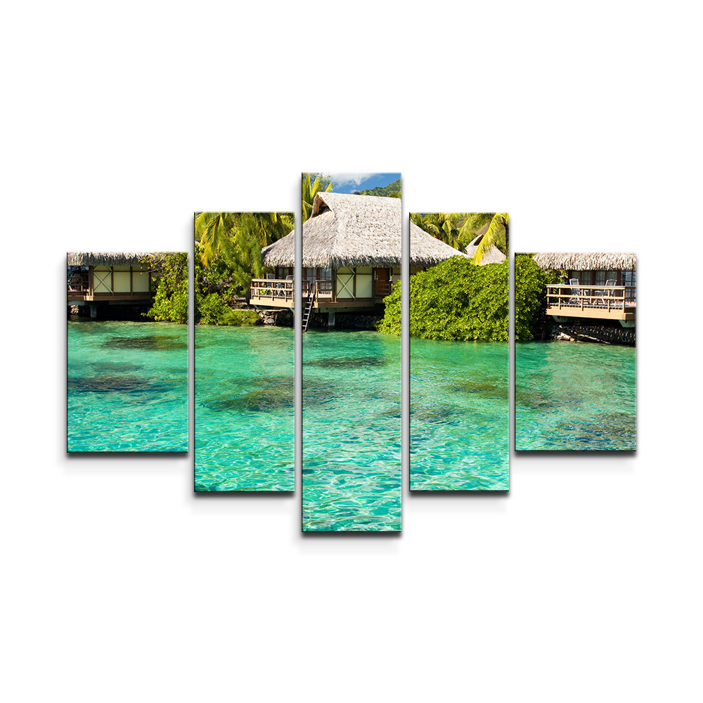 Obraz - 5-dílný Chatky na moři: 125x90 cm