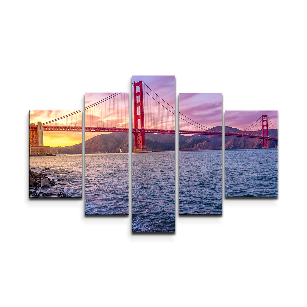 Obraz - 5-dílný Golden Gate 5: 125x90 cm