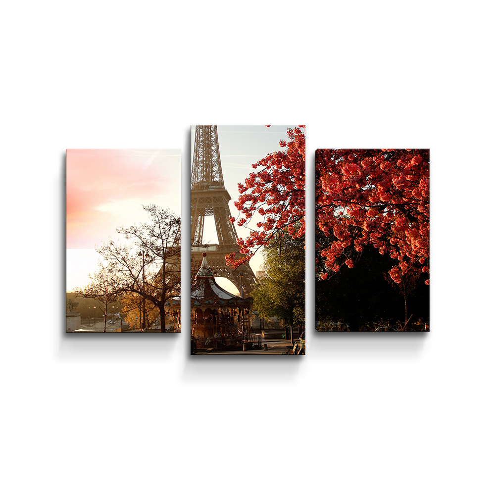 Obraz - 3-dílný Eiffelova věž a červený strom: 75x50 cm