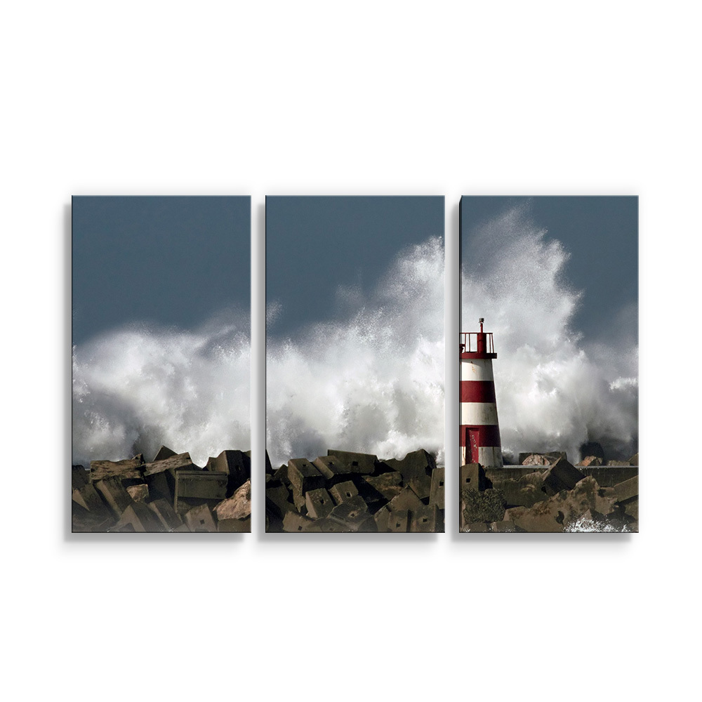 Obraz - 3-dílný Maják ve vlnách: 120x80 cm