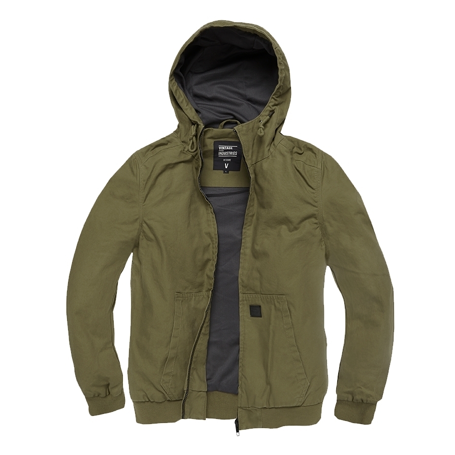 Volnočasová bunda od holandské značky Vintage Industries. Je vyrobena z vysoce kvalitního a pevného materiálu, kde svrchním materiálem je 100 % bavlna.Vnitřní strana bundy je opatřena podšívkou. Součástí bundy je neodnímatelná kapuce s vyšším límcem, kterou lze stáhnout pomocí šňůrek. Konce rukávů a spodní část je opatřena elastickým nápletem, který zabraňuje průniku chladu a větru.Bunda má 2 postranní volné otevřené kapsy a 1 vnitřní kapsu.