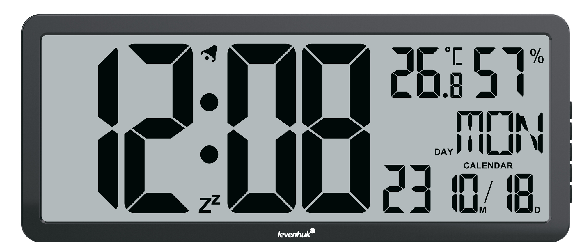 Levenhuk Wezzer Tick H80Teploměr s hodinami Levenhuk Wezzer Tick H80 je přístroj pro ty, kteří mají rádi minimalismus a jednoduchost v detailech. Design je minimalistický: Přední panel neobsahuje žádné rušivé prvky, pouze orámovanou velkou černobílou obrazovku. Informace jsou rozděleny do vizuálních grafických bloků - vše si můžete snadno a okamžitě přečíst. Přístroj se nestane prvkem, který by rušil design interiéru, a proto je ideální do kanceláře i domácnosti. Další výhodou tohoto modelu jsou velké číslice pro zobrazení času, které zabírají téměř celou obrazovku. Díky své velikosti jsou dobře viditelné i z větší vzdálenosti. Další informace se zobrazují menším písmem. Díky vysokému kontrastu obrazovky není problém ani s přečtením údajů. Zobrazuje teplotu a vlhkost, den v týdnu a datum. Kromě toho se na obrazovce mohou objevit dvě ikony: budík a funkce opakovaného buzení. K dispozici je podsvícení. Ovládací tlačítka jsou umístěna na pravém panelu a lze na ně snadno dosáhnout, aniž byste se na ně museli dívat.
