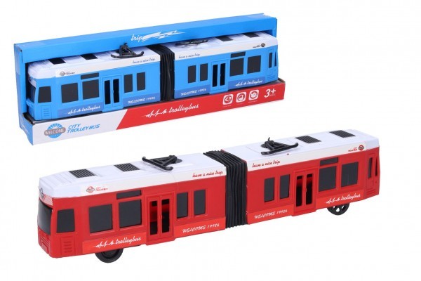 Tramvaj plast 31cm 2 barvy v krabičce 32x10x6cm