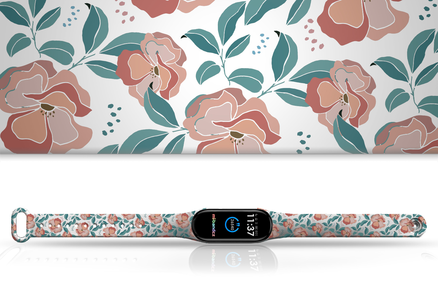 Náhradní náramek Mi band 3/4/5/6/7 Červené květiny,Bílá,Xiaomi Mi band 3/4
