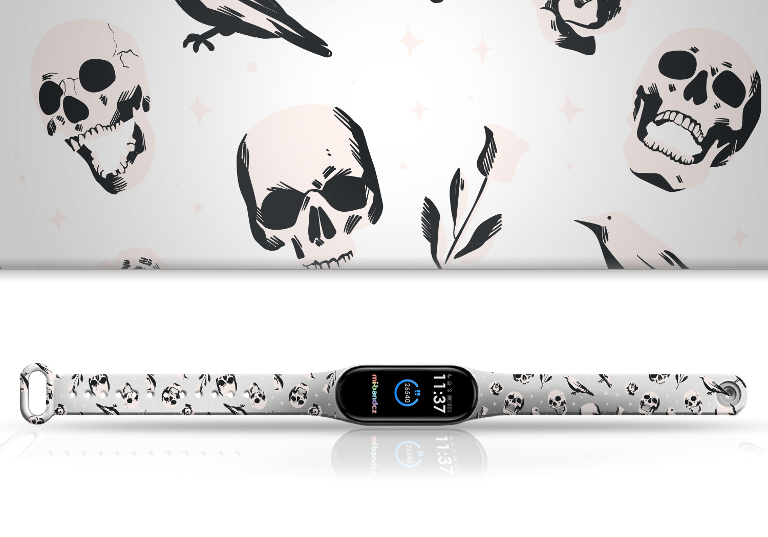 Náhradní náramek Mi band 3/4/5/6/7 Lebky,Bílá,Xiaomi Mi band 3/4