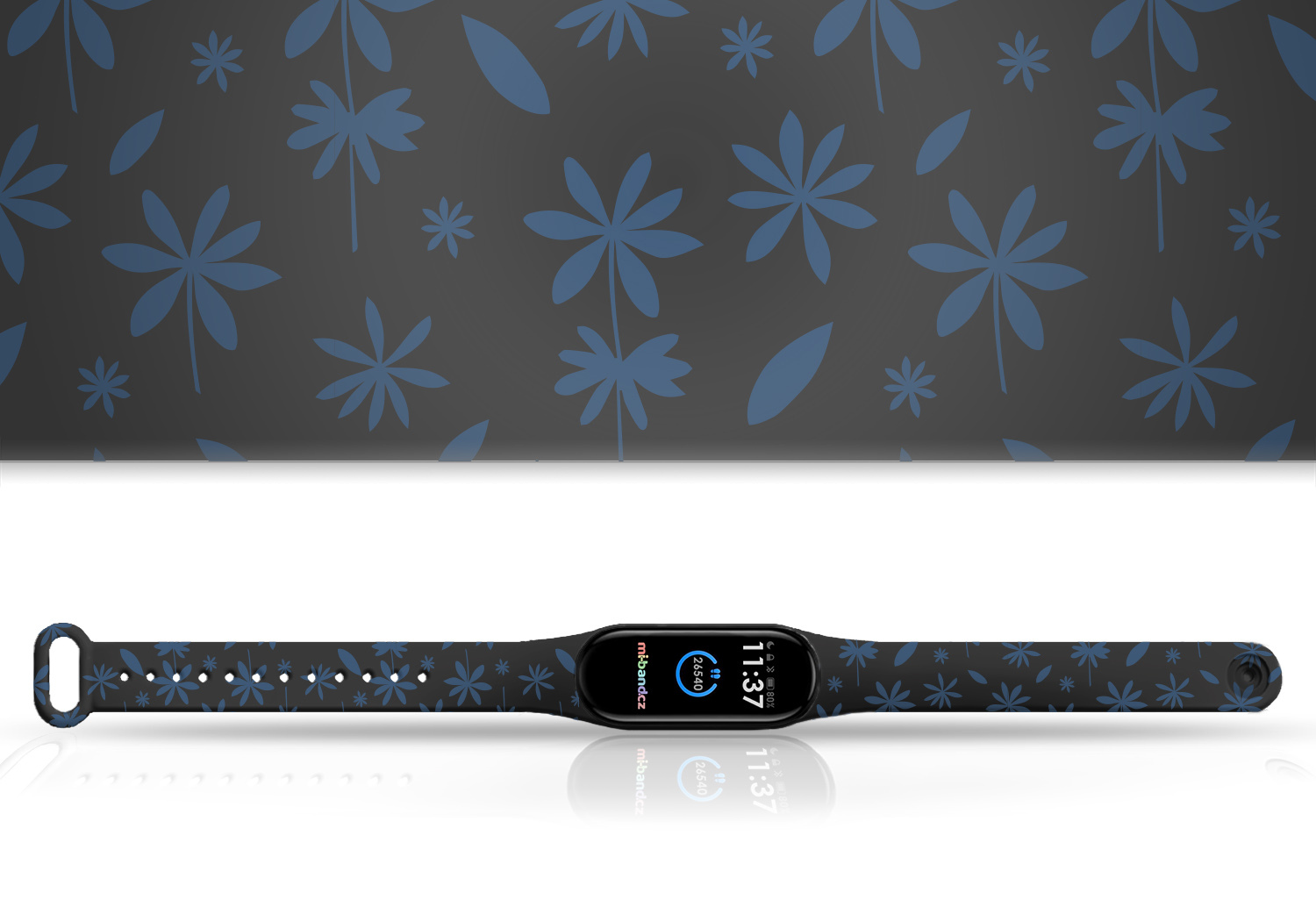 Náhradní náramek Mi band 3/4/5/6/7 Šedomodré lístky,Vícebarevná,Xiaomi Mi band 5/6/7