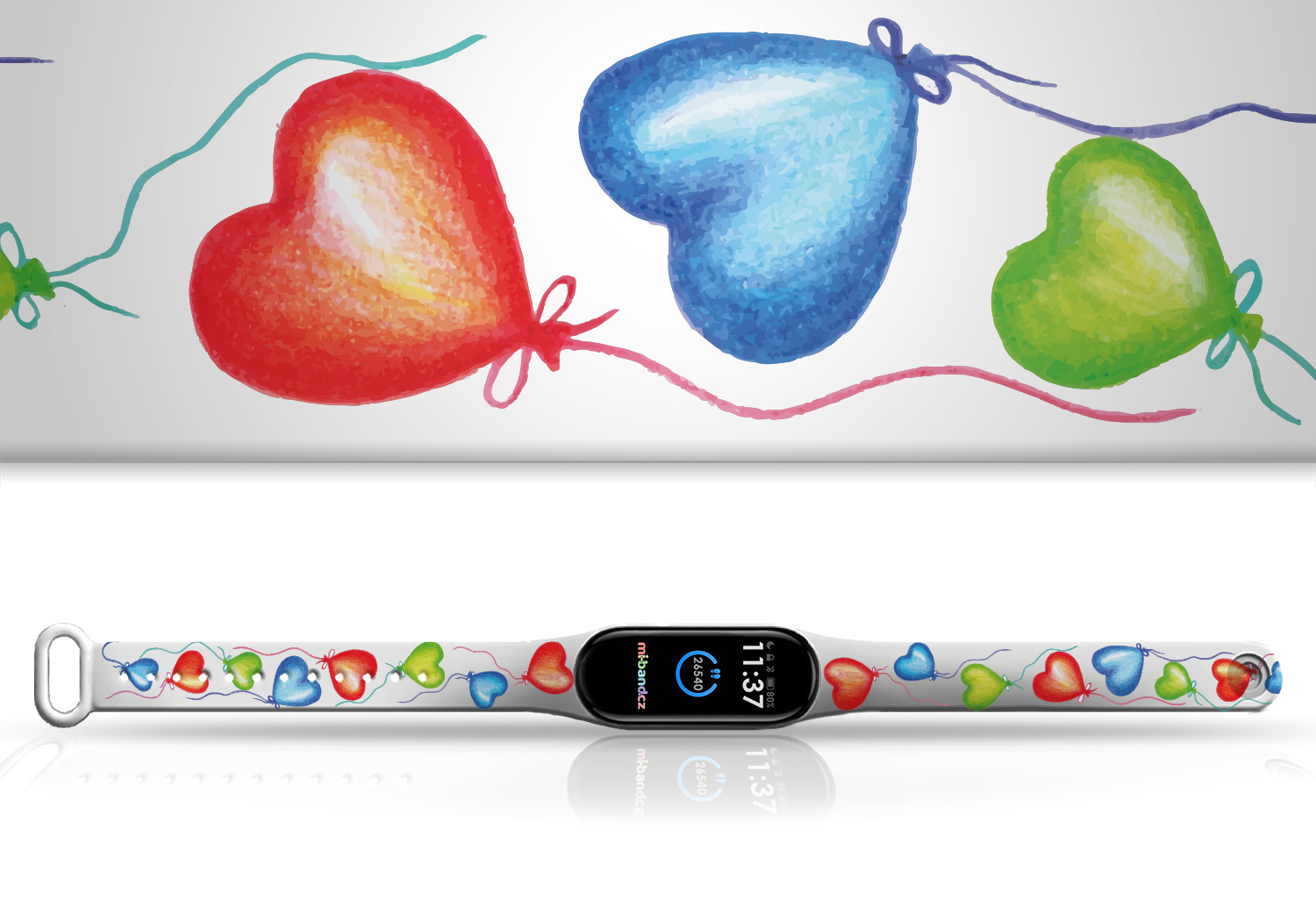 Náhradní náramek Mi band 3/4/5/6/7 Balónky ve tvaru srdce,Bílá,Xiaomi Mi band 3/4