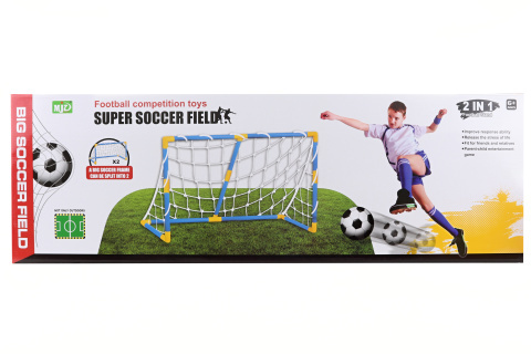 Fotbalová branka. Lze využít jako jednu velkou branku o velikosti 180x120x90 cm, nebo setavit 2 menší branky o velikosti 90x60x40 cm. Baleno v krabici. Rozměry balení 88x29x8 cm. Možno využít uvnitř i venku. Věk 6+ číst celé