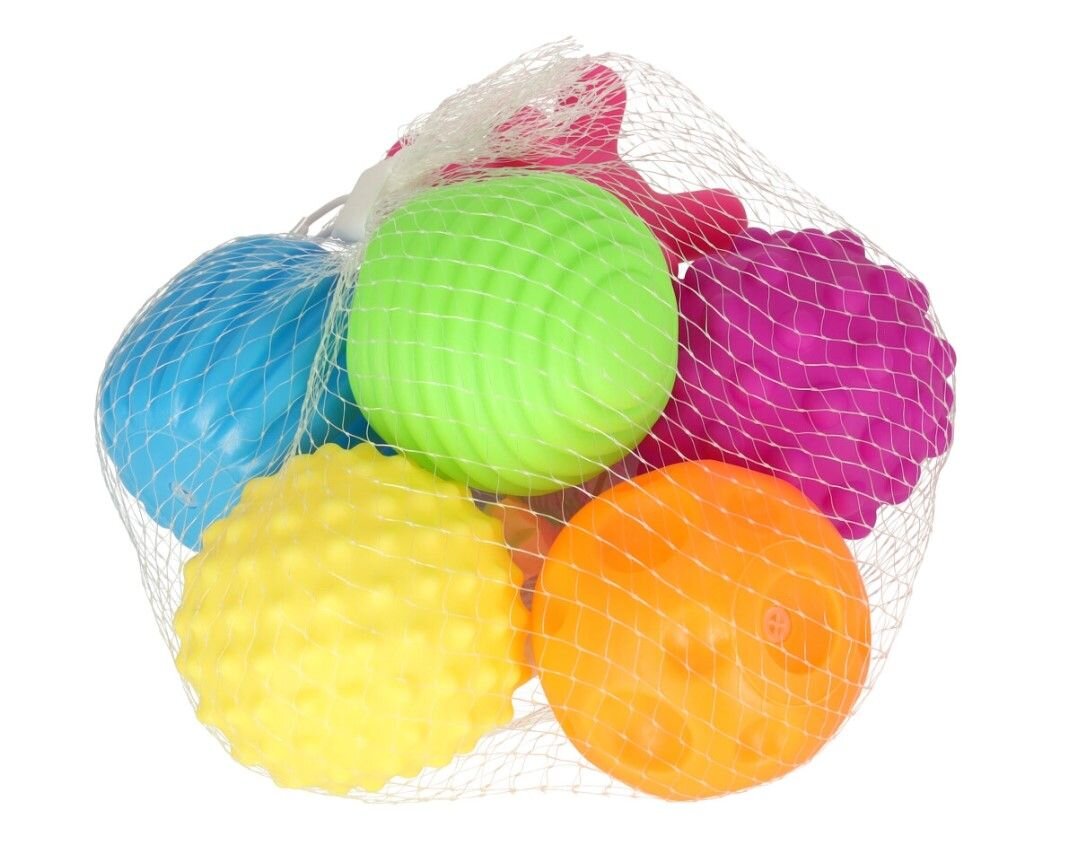 Senzorické míčky pro děti, sada 6 ks v síťce