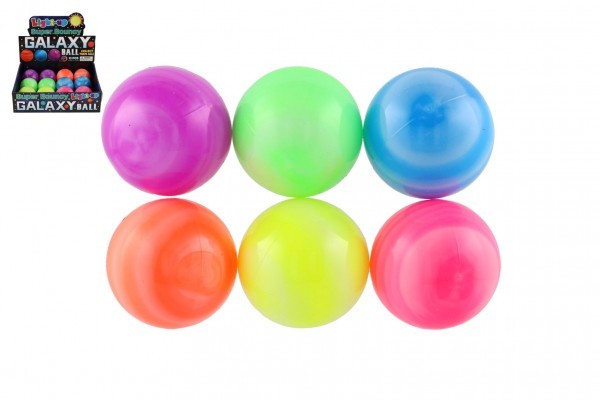 Míček galaxie barevný gumový 5,5cm na baterie se světlem 6 barev 12ks v boxu