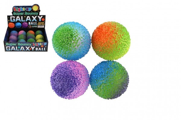 Barevný gumový míček se světlem, barevně připomínající lehce vroubkaté vesmírné tělesa. Rozměr míčku: 5,5 cm Vhodné pro děti od 3 let číst celé