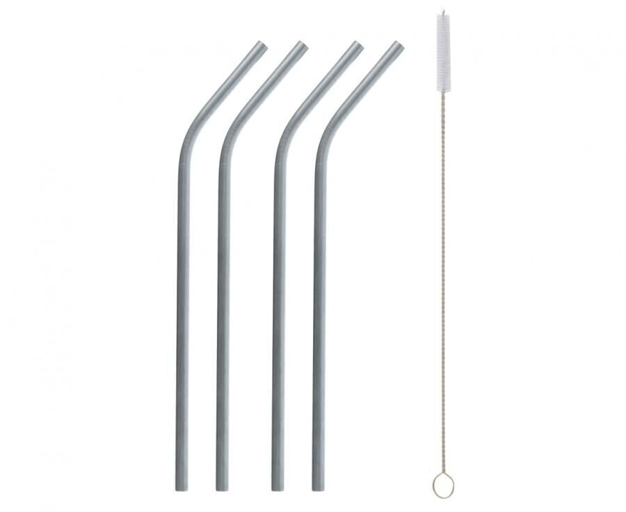 - Sada obsahuje 4 stříbrná zahnutá metalická brčka