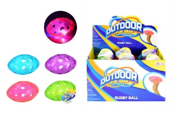 Míček rugby gumový svítící 12cm asst mix barev 6ks v boxu