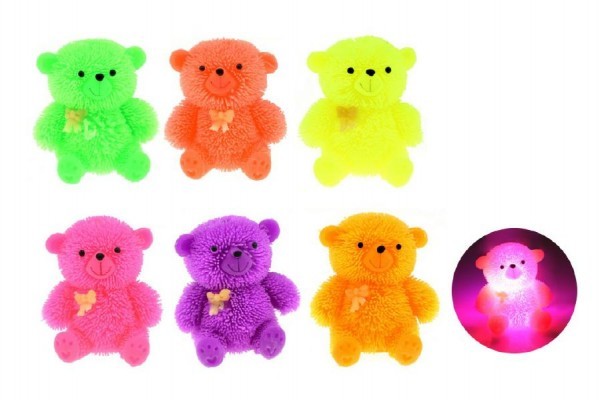 Míček gumový chlupatý medvídek antistresový svítící plast 7cm, 6 barev - 1 kus
