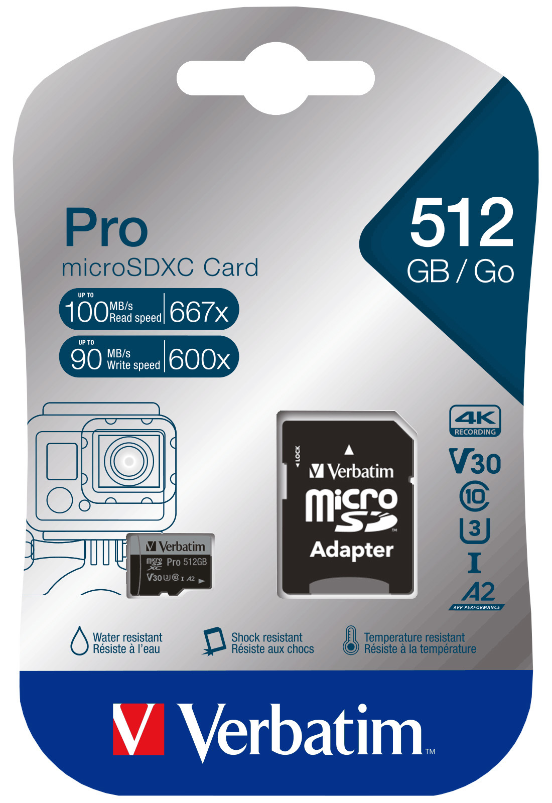 VERBATIM Pro microSDXC 512GB UHS-I V30 U3 + SD adaptér