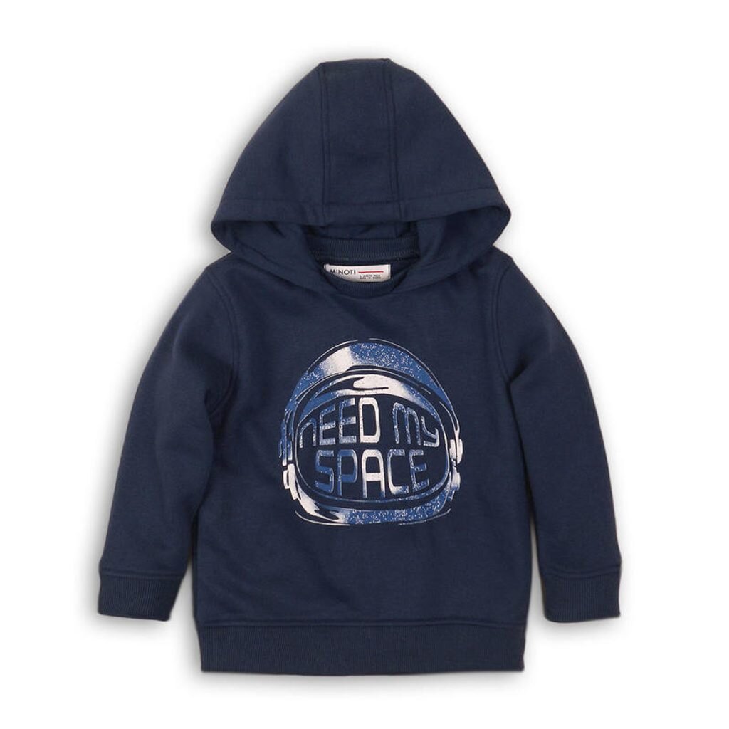 Chlapecká mikina přes hlavu s kapucí v tmavě modré barvě.