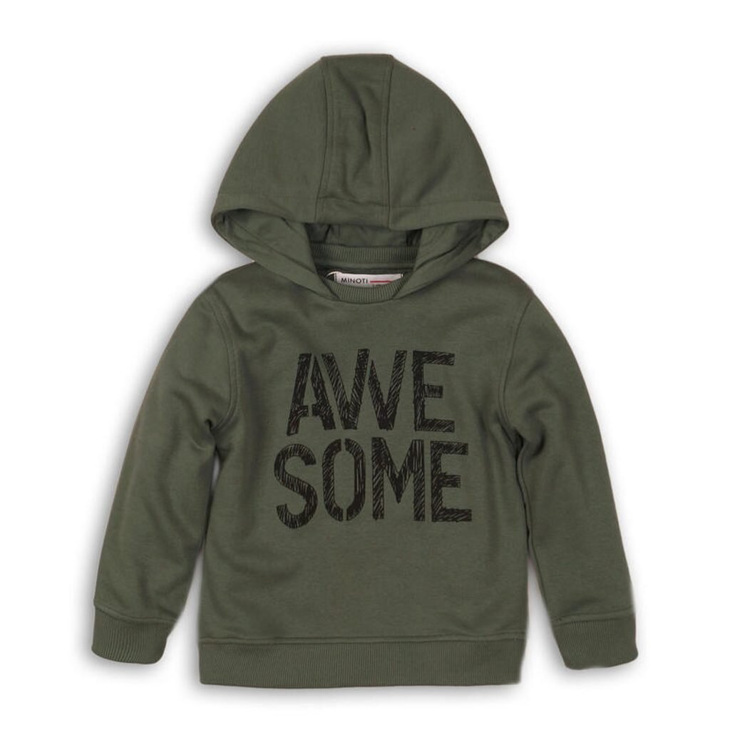 Chlapecká mikina s kapucí v barvě khaki s nápisem na přední straně. číst celé