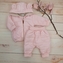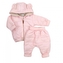 Stylová prošívaná bunda s kapucí + kalhoty - růžová; 56/62 (0-3m)