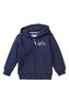 Tato klasická mikina na zip má příjemnou kapuci a dlouhé rukávy s měkkými žebrovanými manžetami a měkkým žebrovaným lemem pro pohodlné nošení a velkou pohyblivost. Mikina je v modré barvě.