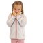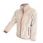 Dětská propínací chlupatá mikina v béžové barvě. Stojací límec, dvě kapsy, barevné kontrastní lemy.