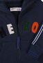 Tato klasická mikina na zip má příjemnou kapuci a dlouhé rukávy s měkkými žebrovanými manžetami a měkkým žebrovaným lemem pro pohodlné nošení a velkou pohyblivost. Mikina je v modré barvě.