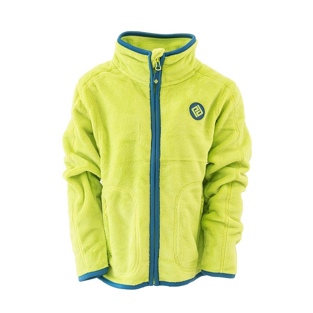 Dětská dívčí propínací chlupatá mikina v zelené barvě. Stojací límec, dvě kapsy, barevné kontrastní lemy.