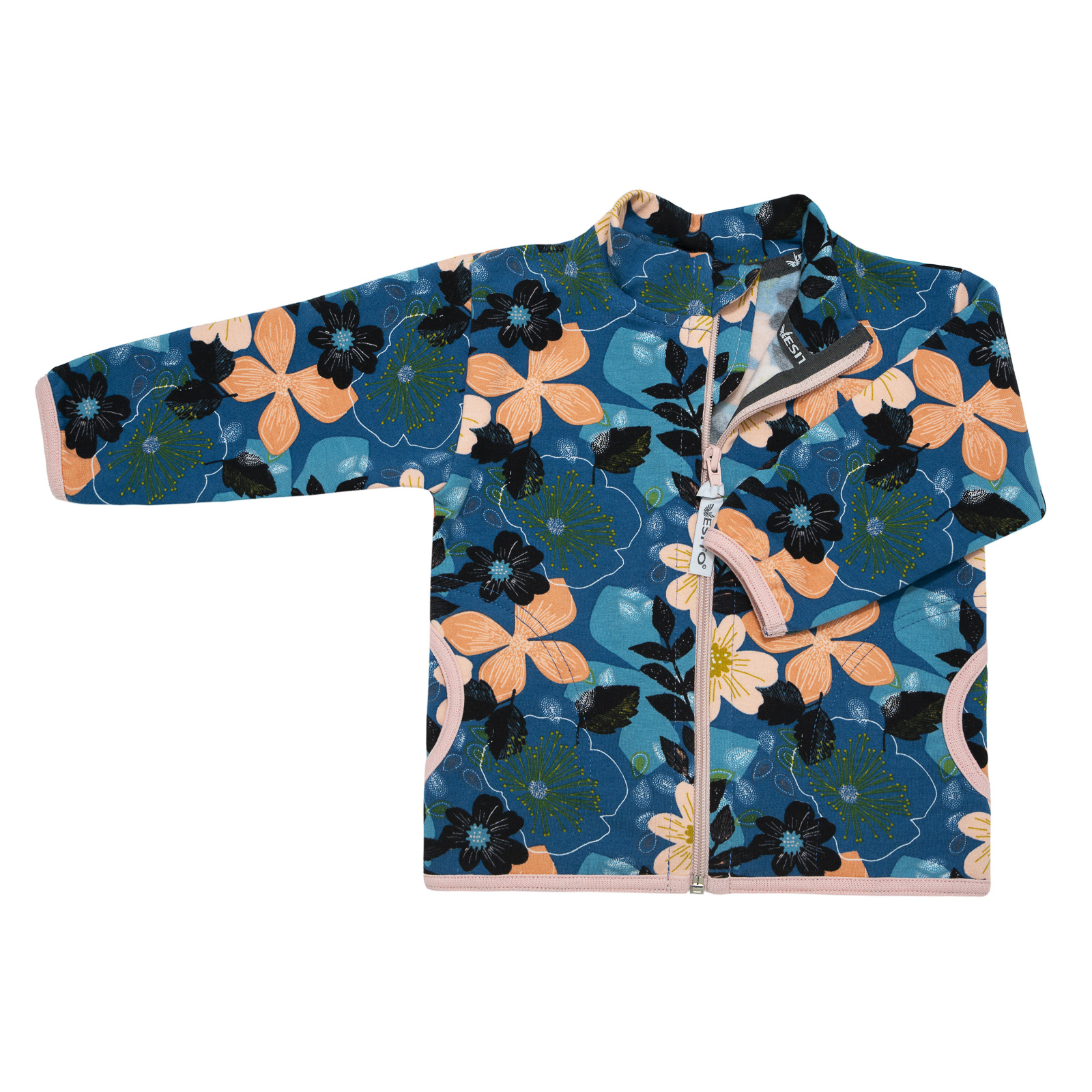 Dětská mikina Květy. Mikina je velmi příjemná a pohodlná na nošení. Pohodlné kapsy po obou stranách plně rozepínatelné mikiny s velkým krytím zipu, takže nehrozí žádná nehoda v podobě skřípnuté kůže pod krkem. Jemný límeček "stoják" ke krku a žádná kapuce. Mikina bez kapuce. Vyšší gramáž, bavlna v BIO kvalitě.