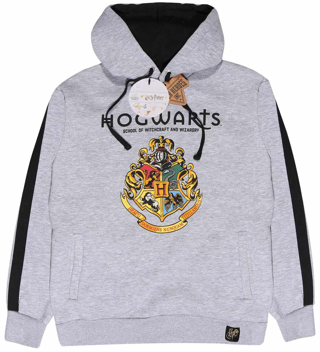 Šedá atraktivní mikina s kapucí na motivy Hogwarts Crest (Bradavické koleje) známé knižní a filmové ságy Harry Potter.