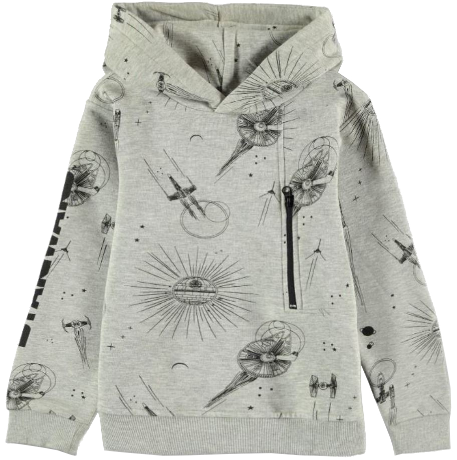 Šedá dětská mikina a kapucí inspirovaná hvězdnými loděmi Hvězdných válek.