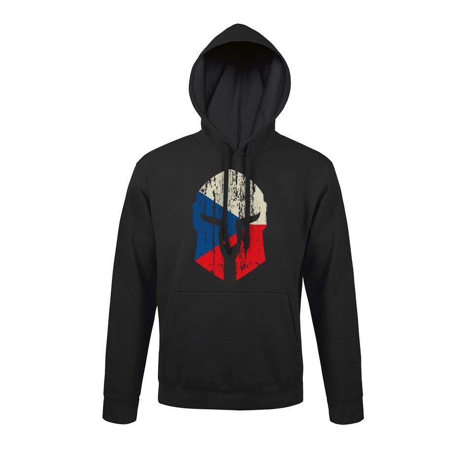 Černá mikina s barevným potiskem - spartanská helma v barvách vlajky České republiky. Materiál - 50 % bavlna, 50 % polyester. číst celé