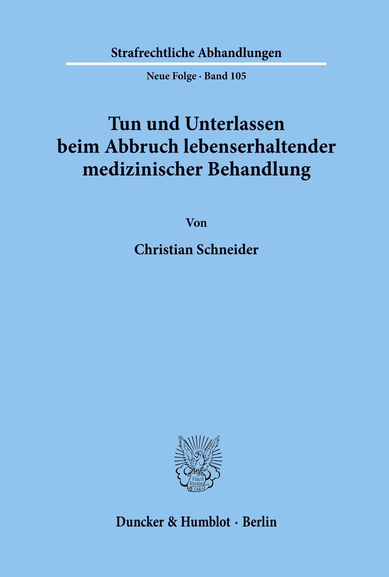Tun und Unterlassen beim Abbruch lebenserhaltender medizinischer Behandlung. (německy)