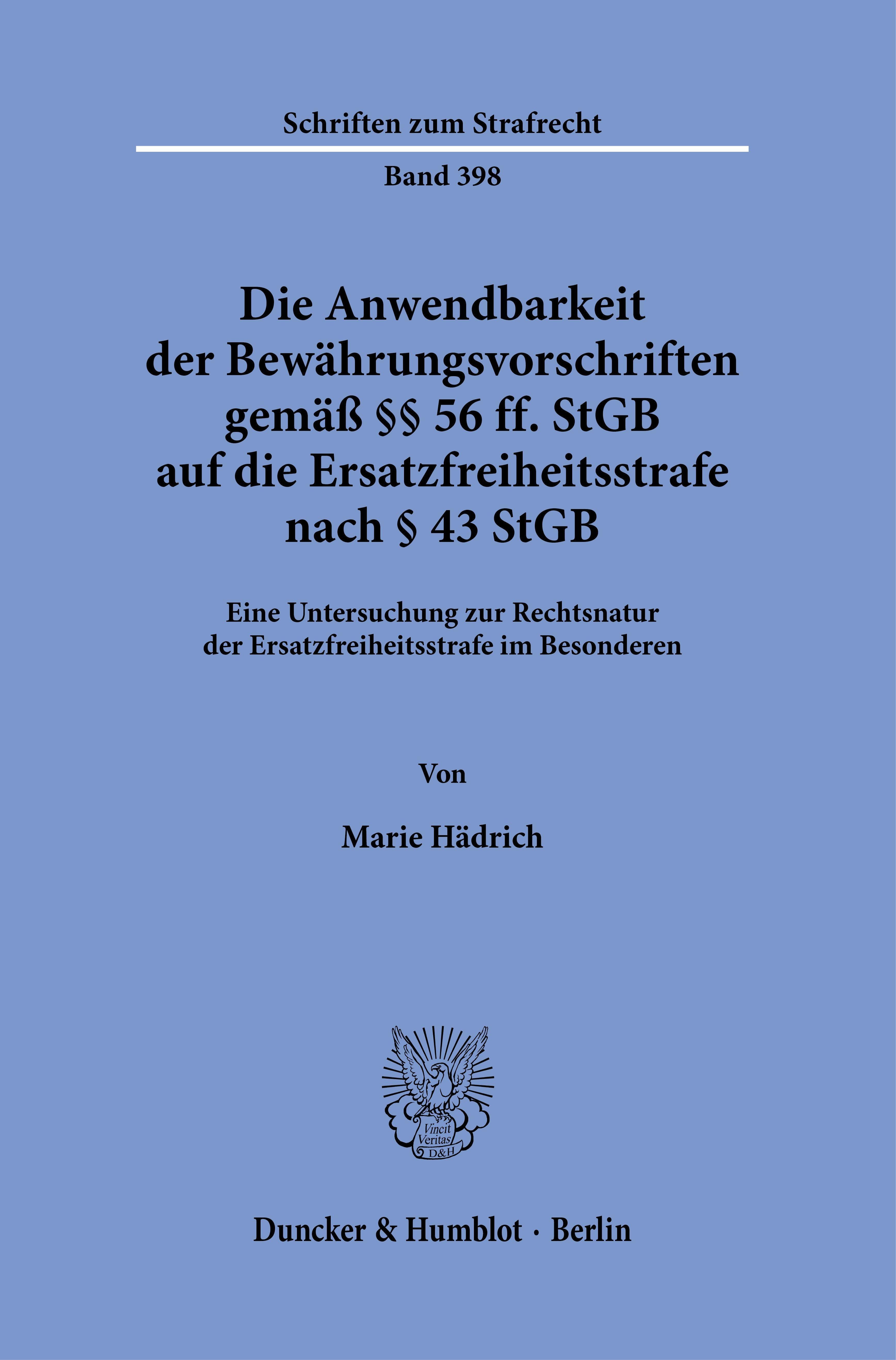 Die Anwendbarkeit der Bewährungsvorschriften gemäß §§ 56 ff. StGB auf die Ersatzfreiheitsstrafe nach § 43 StGB. (německy)