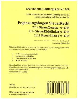 Ergänzungsbogen SteuerRecht, Griffregister (německy)