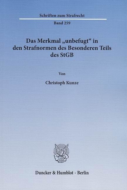Das Merkmal »unbefugt« in den Strafnormen des Besonderen Teils des StGB (německy)