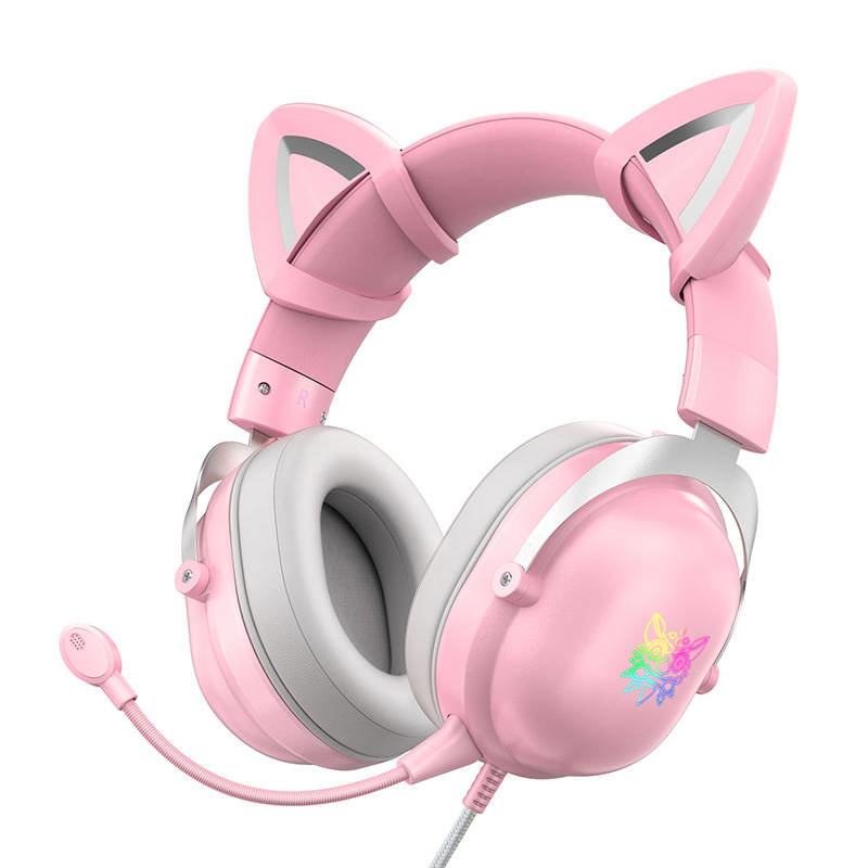 Are you looking for stylish headphones with a cool lighting effect? Do you value comfort and quality? Do you love to play and chat online? Made of pink plastic and equipped with attachable cat ears, the ONIKUMA X11 headphones will make a furore among your friends! What\'s more, thanks to the ergonomic shape and skin-friendly materials, you can use the headphones for hours without feeling uncomfortable! You can disconnect or connect the included noise-canceling microphone at any time - the same goes for the cat ears.