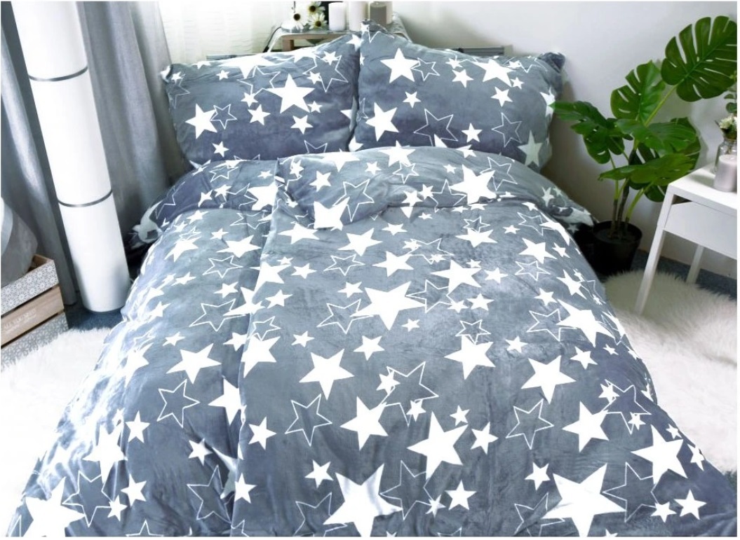 Povlečení Mikroplyš Hvězdy světle šedé 140x200, 70x90 cm