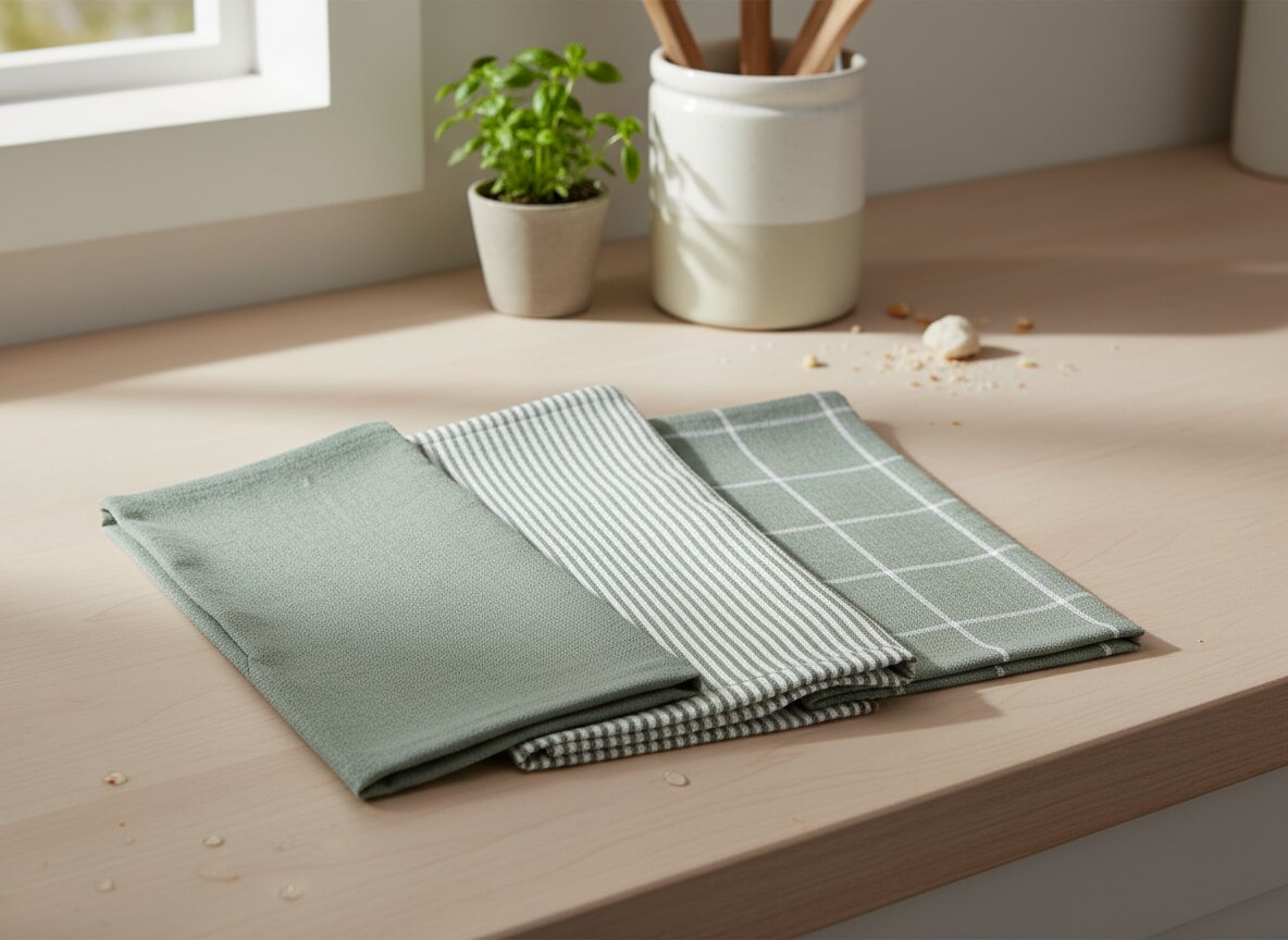 Sada zelených kuchyňských utěrek, 3 kusy, 45 × 65 cm.