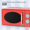 Mikrovlnná trouba. Kapacita 20 l. RETRO design s chromovanou rukojetí. Časovač na 30 min. Termostat pro nastavení teploty. Skleněný otočný talíř o průměru 245 mm. Zvukový signál. Dětská pojistka. Příkon: 700 W. Barva: červená