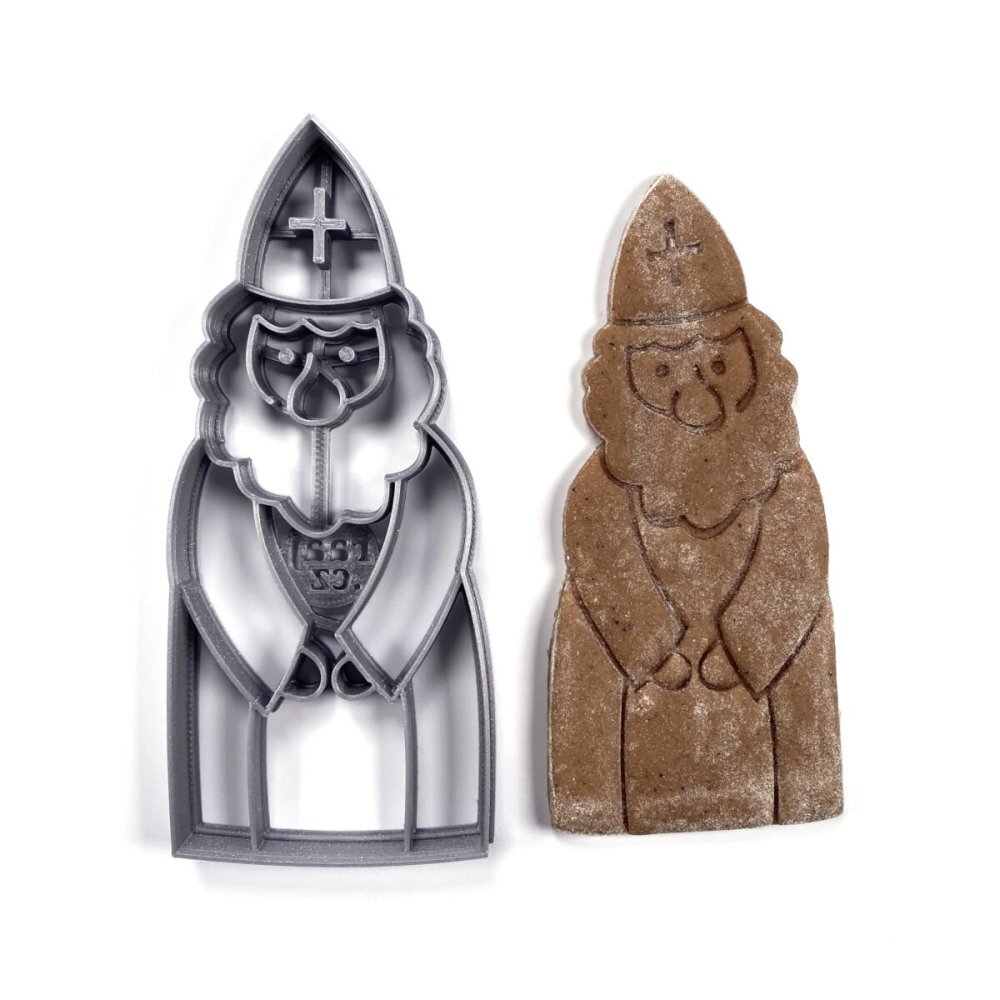 Plastové 3D vykrajovátko Mikuláše v mikulášské čepici a s mohutným vousem je zhotoveno pomocí 3D tisku, z materiálu PLA plast (materiál biologicky odbouratelný), odolný do 50°C, nevhodný do myčky na nádobí. Středové linie vykrajovátka přenesou do hmoty přesný obraz Mikuláše. Vhodné pro polotuhé hmoty jako je těsto (na perníčky, sušenky, linecké cukroví, šlehačkové cukroví), fondán, marcipán, plastelína, Play-Doh, Modurit, keramická hlína, Fimo apod. Před prvním použitím a vždy po použití vykrajovátko omyjte jarovou vodou a důkladně osušte. Pro snazší vykrajování těst je vhodné vykrajovátko nejprve vložit do misky s moukou. Není určeno pro děti do 3 let, hrozí odlomení malých částí.