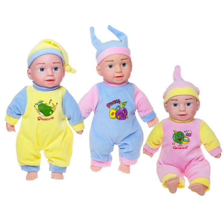 Usmievavé miminko s mäkkým telíčkom. Bábika po vytiahnutí poistky zo strojčeka bľabotá - mama, papa. Možnosť výberu z troch farieb oblečenia - modré, žlté alebo ružové. Nevhodné pre deti do 3 rokov.Výška - 26cm číst celé
