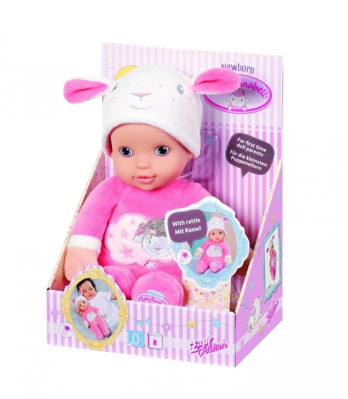 Baby Annabell® Newborn je skvělým dárkem pro miminka a stane se báječnou kamarádkou pro malé milovníky mazlení. Třiceti centimetrová látková panenka má měkké tělíčko a vinylovou hlavičku. To z ní dělá skvělou společnici na mazlení do postýlek těch nejmenších maminek panenek ve věku 0 - 12 měsíců. Z roztomilých růžových dupaček se směje oblíbená ovečka Baby Annabell®. Čepička je ozdobena legračními oušky, které jsou jako dělané pro první pokusy o uchopení. Překvapení nakonec - uvnitř panenky je chrastítko, které čeká, až jej malá maminka objeví. Panenku lze prát v ruce.