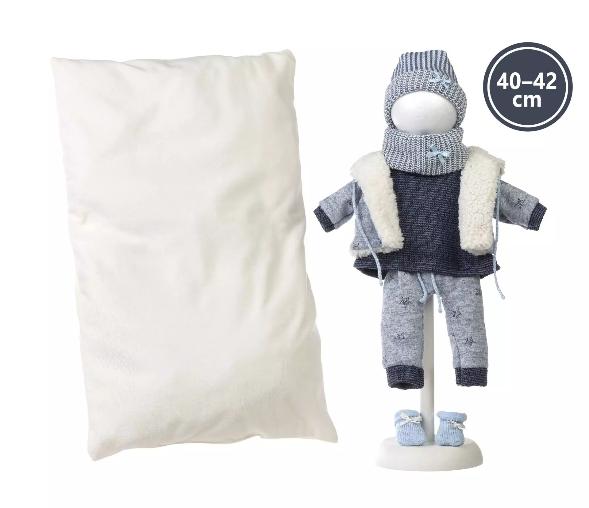 6dílný obleček s oboustranným polštářem využitelným jako podložka pro panenku miminko NEW BORN Llorens velikosti 40-42 cm